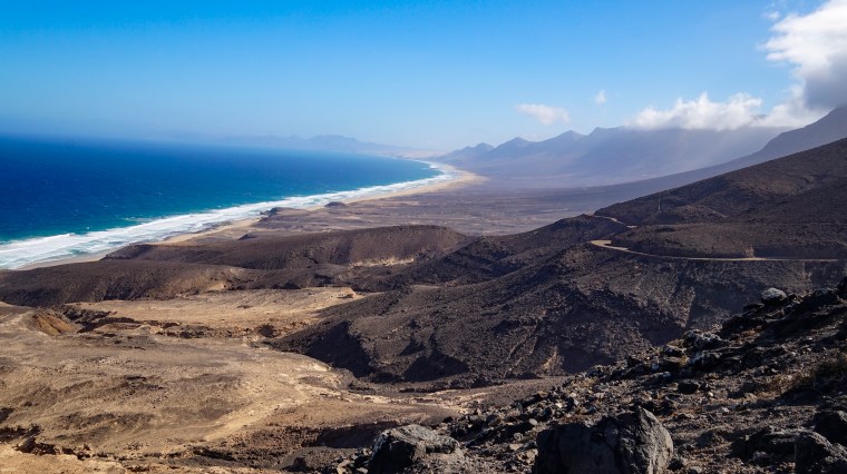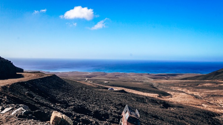 Früh ging es für uns zur Autovermietung. Nach Übernahme des Renault Clio und dem Hinweis, dass die Versicherung nur auf Asphaltstraßen greift, ging es direkt die Schotterpiste entlang Richtung Süden.  Der kurvenreiche Anstieg führte uns zunächst nach Cofete. Dies ist ein kleiner, spartanischer Ort an der Westküste. Es ist erstaunlich was den Menschen zum Leben reicht und wie hoch doch unser eigener Standard ist. Landschaftlich haben mich die Berge und der raue Ozean ein wenig an Hawaii erinnert. Hier nur eben nicht saftig grün,  sondern grau in grau. Dennoch mindestens genauso schön und genauso beeindruckend!